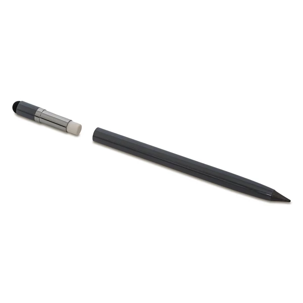 LAKINs evighetspenna är en innovativ reklamprodukt som kombinerar funktionalitet med ett ekologiskt förhållningssätt. Tack vare användningen av en speciell metallegering lämnar den ett märke på papperet utan att behöva vässas eller byta refiller, vilket motsvarar slitaget av cirka 100 traditionella blyertspennor. Den smala metallkroppen med matt finish ger den ett elegant utseende, medan den extra pekskärmsspetsen gör den ännu mer praktisk för vardagsbruk. Möjligheten till personlig anpassning genom lasergravyr eller UV-tryck gör LAKIN till ett effektivt reklammedium, perfekt för mässor, konferenser eller som gåva till kunder.